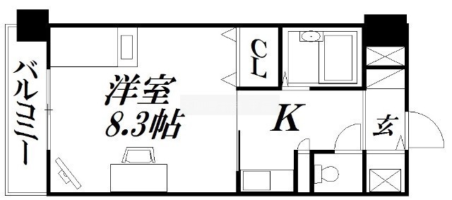 1K(24.58m²)└ 洋室8.3帖 K1帖