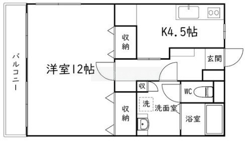 1DK(43.74m²)└ 洋室12帖 DK4.5帖
