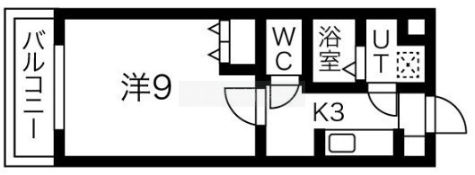 1K(25.92m²)└ 洋室9帖 K3帖