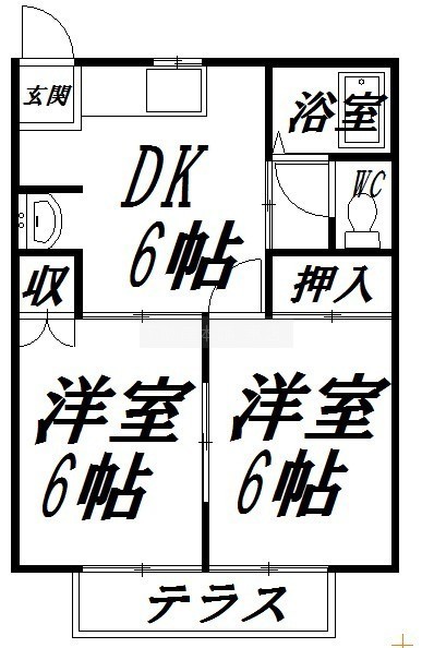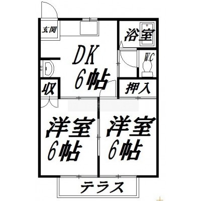 2DK(39.66m²)└ 洋室6帖 洋室6帖 DK6帖