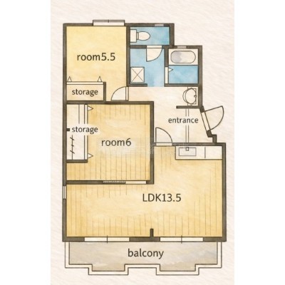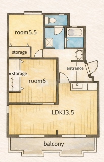 2LDK(66.57m²)└ 洋室6帖 LDK13.5帖 洋室5.5帖