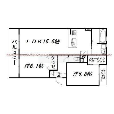 2LDK(64.52m²)└ 洋室6.1帖 洋室6.8帖 LDK16.6帖