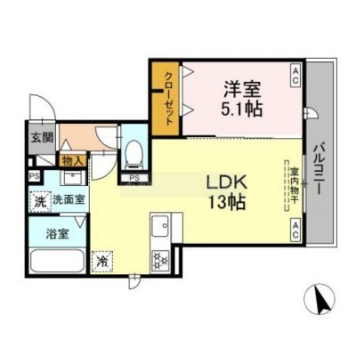 1LDK(42.72m²)└ 洋室5.1帖 LDK13帖