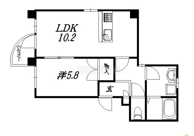 1LDK(42.04m²)└ LDK10.2帖 洋室5.8帖