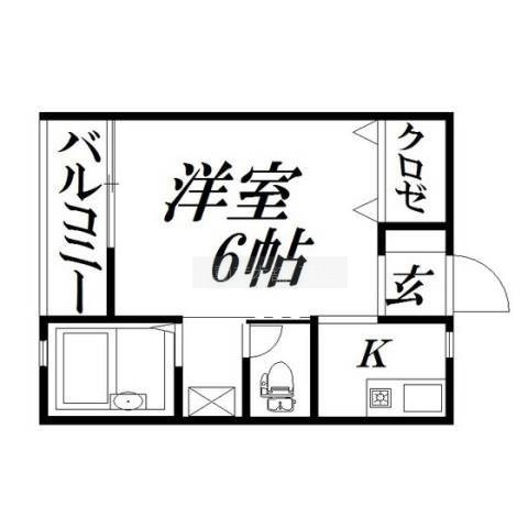 1K(19.8m²)└ 洋室6帖 K1帖