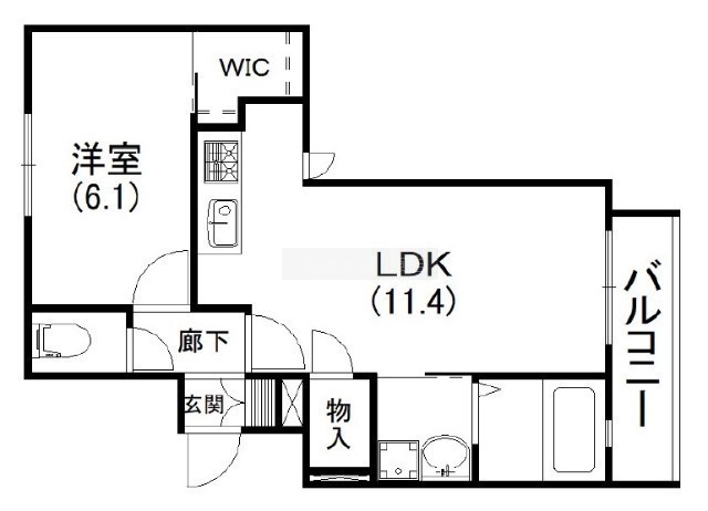 1LDK(42.27m²)└ 洋室6.1帖 LDK11.4帖