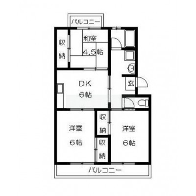 3DK(55.58m²)└ 洋室6帖 和室4.5帖 洋室6帖 DK6帖