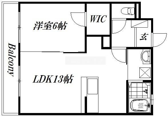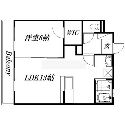 1LDK(43.8m²)└ LDK13帖 洋室6帖