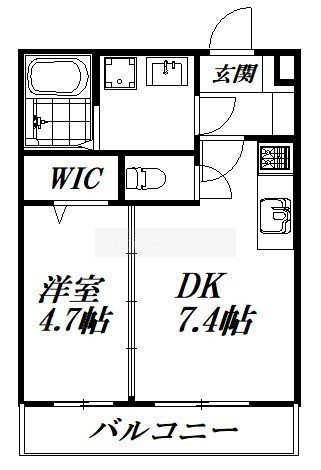 1DK(31.68m²)└ 洋室4.7帖 DK7.4帖