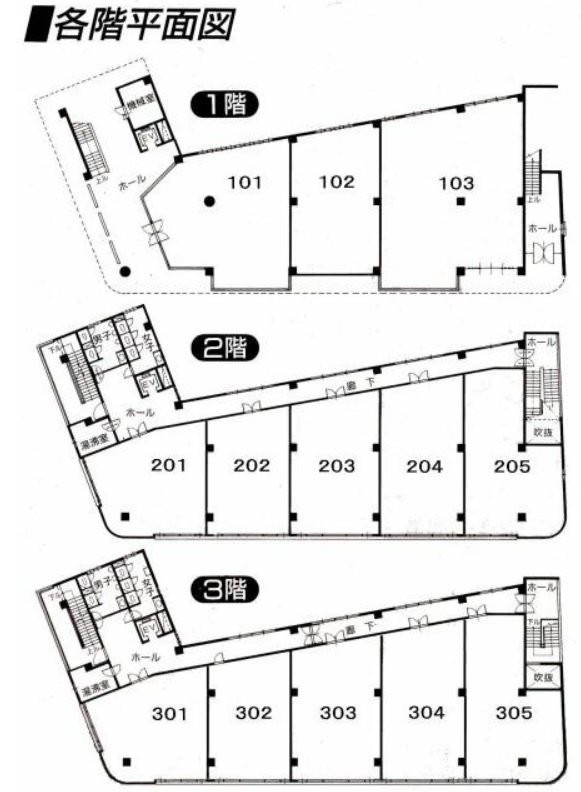 所在階/建物の階建 2階(202) / 地上3階建 主要採光面 構造 鉄筋コンクリート(RC)造 間取り 契約期間 3年間 権利金 住宅保険 出店推奨業種 出店不可業種 その他費用 その他 - 鍵交換費用:1万9,800円