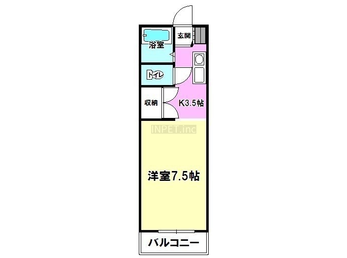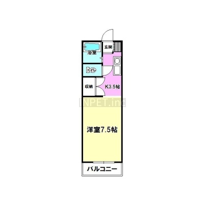 1K(23.52m²)└ 4階:洋室7.5帖 K3.5帖