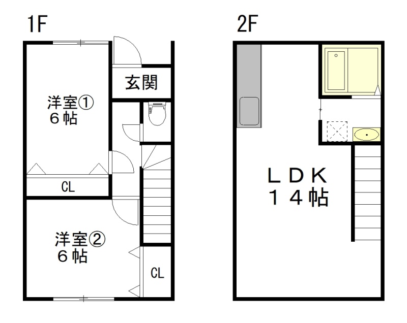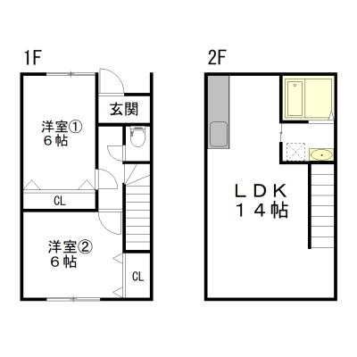 その他(64.07m²)└ 1階:洋室6帖 洋室6帖 / 2階:LDK14帖