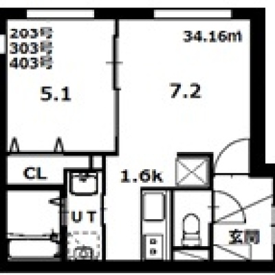 1LDK(34.16m²)└ 2階:LD7.2帖 K1.6帖 洋室5.1帖