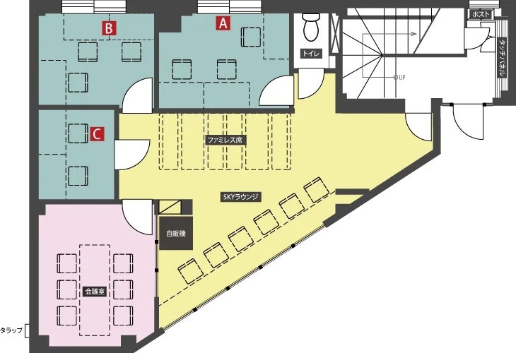 備考 ・24時間セキュリティで安心した利用が可能です。 ・予約システムを使った共有会議室完備。 ・ICカード認証付き共有複合機完備。 ・その他共有で、給湯スペース、トイレなどの設備をご用意しております。 主な周辺施設色がついているアイコンをクリックすると、本物件までの道順を見ることができます。