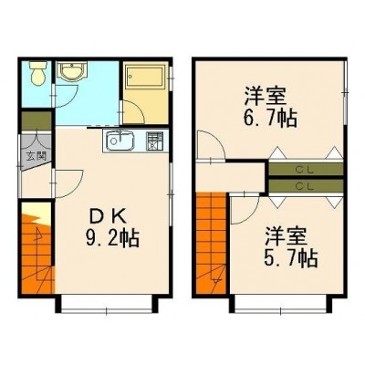 2LDK(61.96m²)└ 洋室5.7帖 洋室6.7帖 LDK9.2帖
