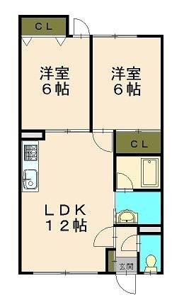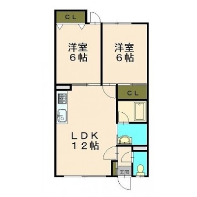 2LDK(49.68m²)└ 洋室6.0帖×2 LDK12.0帖