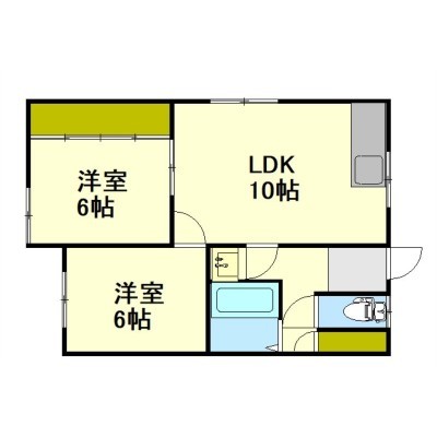 2LDK(48.6m²)└ LDK10帖 洋室6帖 洋室6帖