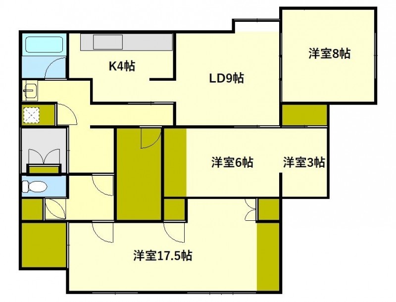 3SLDK(84.46m²)└ LD9帖 洋室17.5帖 洋室8帖 洋室6帖 洋室3帖 K4帖