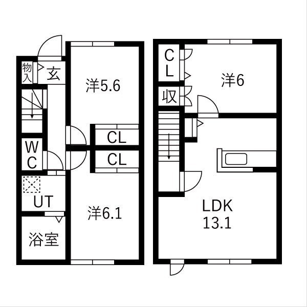3LDK(74.5m²)└ LDK13.1帖 洋室5.6帖 洋室6.1帖 洋室6帖
