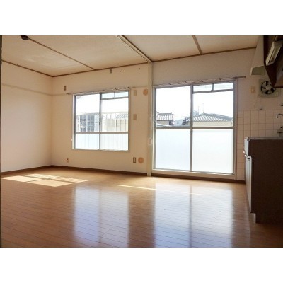 ここに注目!3DK→2LDKへ改装しました。給湯器はありませんが、広い間口からの風通しが自慢のお部屋です。最大開口(広いバルコニー側)は東南向きで、朝日をたっぷり取り込み、洗濯物の渇きが良い点や、湿気に悩まされることが少ない利点があります。収納もたっぷりあります。キッチンは湯沸かし器が必要ですが、30,000円未満でいろんなタイプがございます!