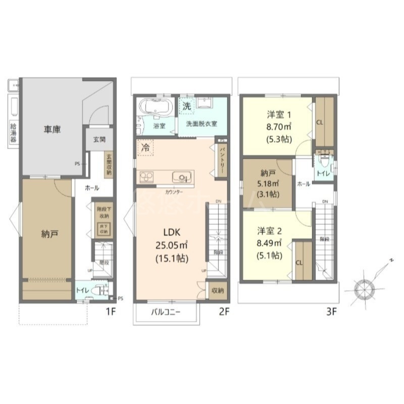 2LDK(110.84m²)└ 1階:洋室5.3帖 / その他:洋室5.1帖 LDK15.1帖 S3.1帖