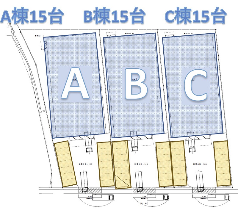 A棟は裏側にゆったりしたスペースがあります。