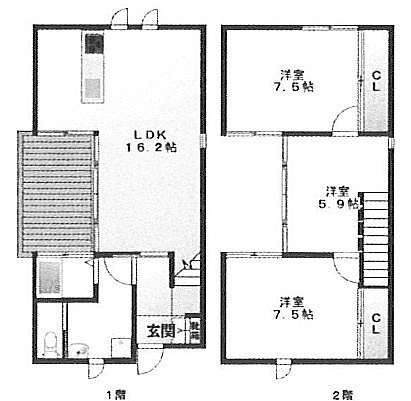 3LDK(81.44m²)└ 1階:洋室7.5帖 / その他:洋室7.5帖 洋室5.9帖 LDK16.2帖