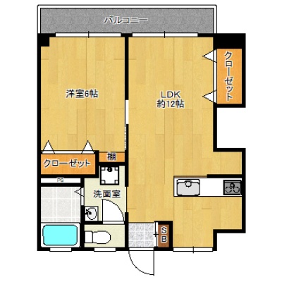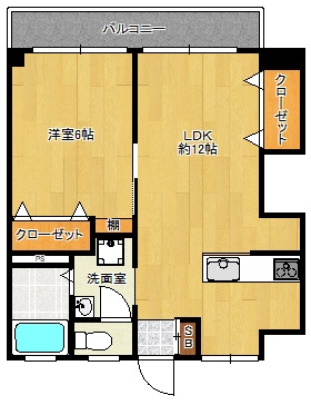 1LDK(40m²)└ 洋室6帖 洋室6帖 LDK12帖