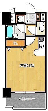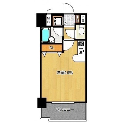 ワンルーム(24.32m²)└ 洋室9.5帖