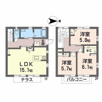 3LDK(84.14m²)└ LDK15.1帖 洋室6.1帖 洋室5.8帖 洋室5.7帖