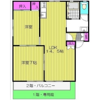 所在階/建物の階建 2階(B201) / 地上2階建 総戸数 主要採光面 構造 軽量鉄骨造 バルコニー あり契約期間 2年間 住宅保険 2万円(2年間) その他費用 毎月の費用 - 町費:400円