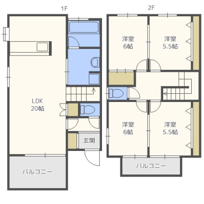 4LDK(105.02m²)└ LDK20帖 洋室6帖 洋室6帖 洋室5.5帖 洋室5.5帖