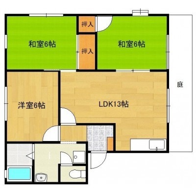 3LDK(64m²)└ LDK13帖 洋室6帖 和室6帖 和室6帖