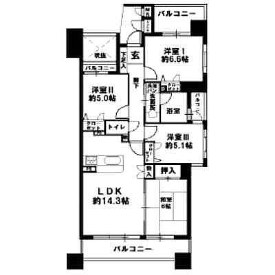 4LDK(80.58m²)└ LDK14.3帖 洋室6.6帖 洋室5.1帖 洋室5帖 和室6帖