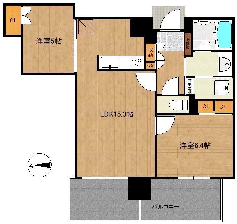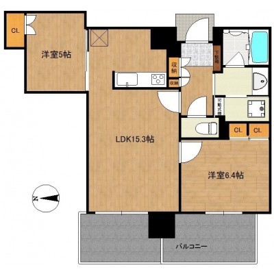 2LDK(61.82m²)└ LDK15.3帖 洋室6.4帖 洋室5帖