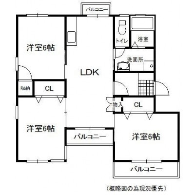 3LDK(70m²)└ LDK 洋室6帖 洋室6帖 洋室6帖