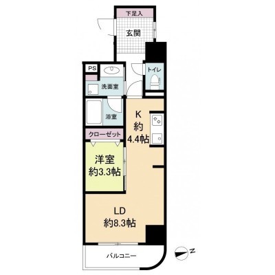 1SLDK(44.31m²)└ LDK12.7帖 洋室3.3帖