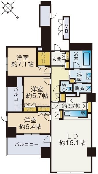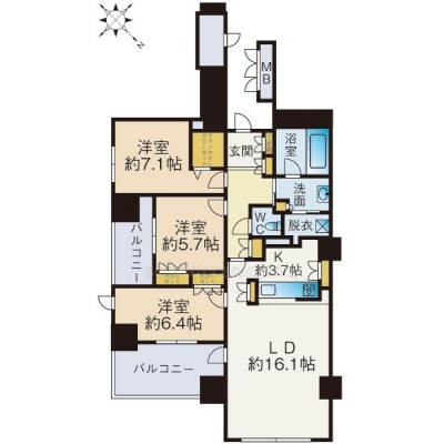 3LDK(89.09m²)└ LDK19.8帖 洋室7.1帖 洋室5.7帖 洋室6.4帖