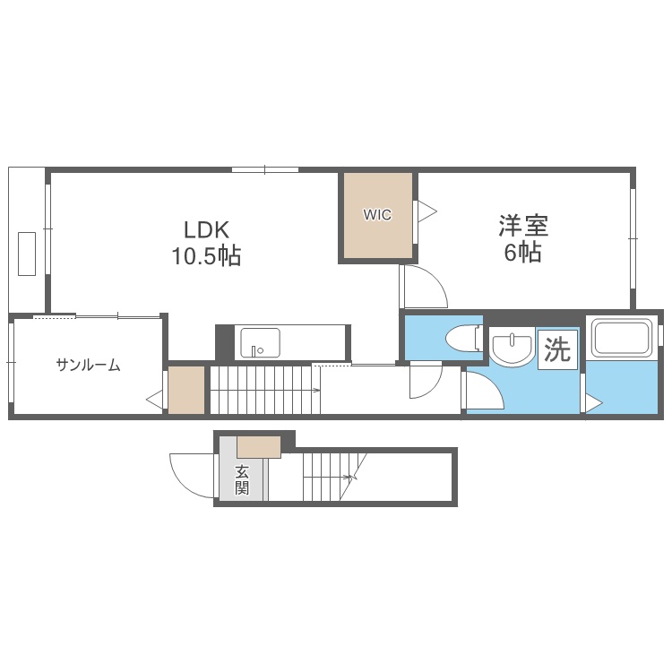 1LDK(48.92m²)└ LDK10.5帖 洋室6帖