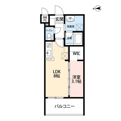 1LDK(30m²)└ LDK8帖 洋室3.1帖