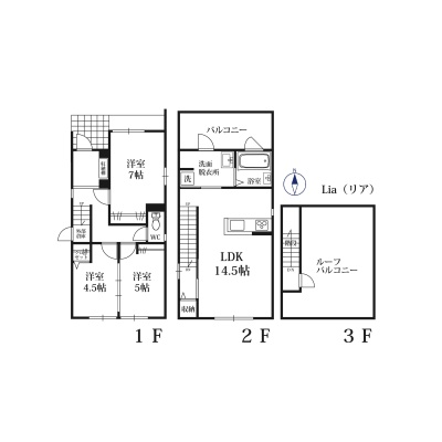 3LDK(80.73m²)└ LDK14.5帖 洋室7帖 洋室5帖 洋室4.5帖