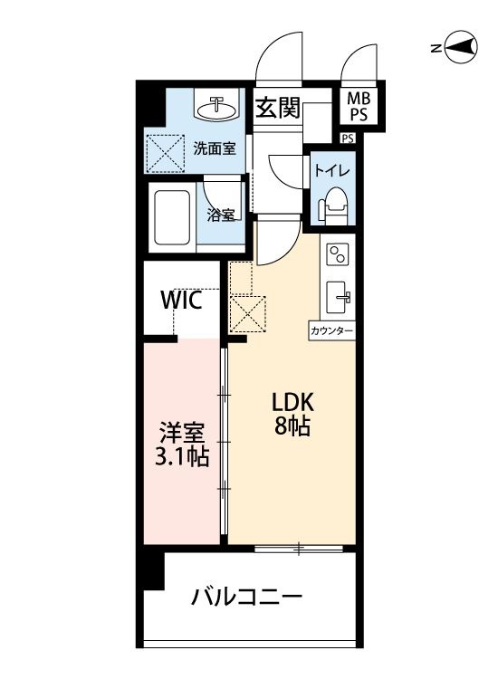 1LDK(30m²)└ LDK8帖 洋室3.1帖
