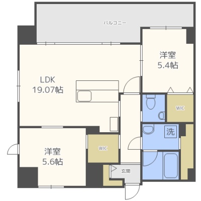 2LDK(61m²)└ LDK19.07帖 洋室5.6帖 洋室5.4帖