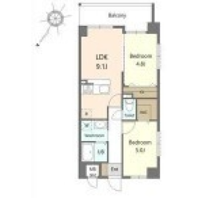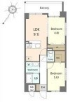 2DK(46.02m²)└ DK9.1帖 洋室5帖 洋室4.8帖