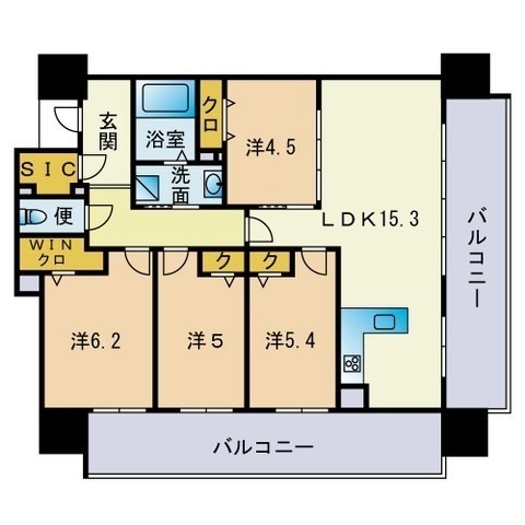 4LDK(80.63m²)└ LDK15.3帖 洋室6.2帖 洋室5.4帖 洋室5帖 洋室4.5帖