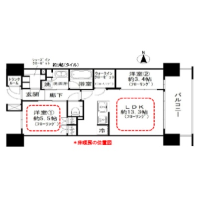 2LDK(53.61m²)└ LDK13.3帖 洋室5.5帖 洋室3.4帖