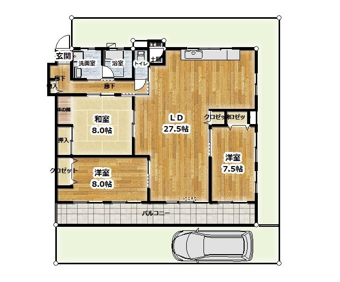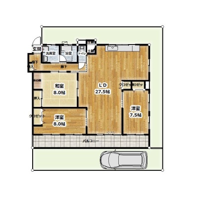 3LDK(98.72m²)└ LDK27.5帖 洋室8帖 洋室7.5帖 和室8帖