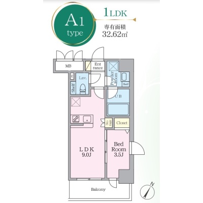 1LDK(32.62m²)└ LDK9帖 洋室3.5帖