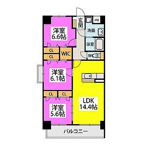 3LDK(73.79m²)└ LDK14.4帖 洋室6.6帖 洋室6.1帖 洋室5.6帖