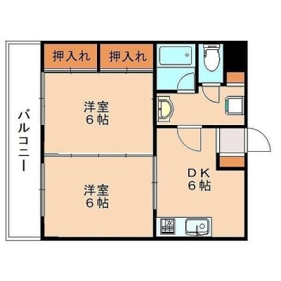 2DK(41m²)└ DK6帖 洋室6帖 洋室6帖